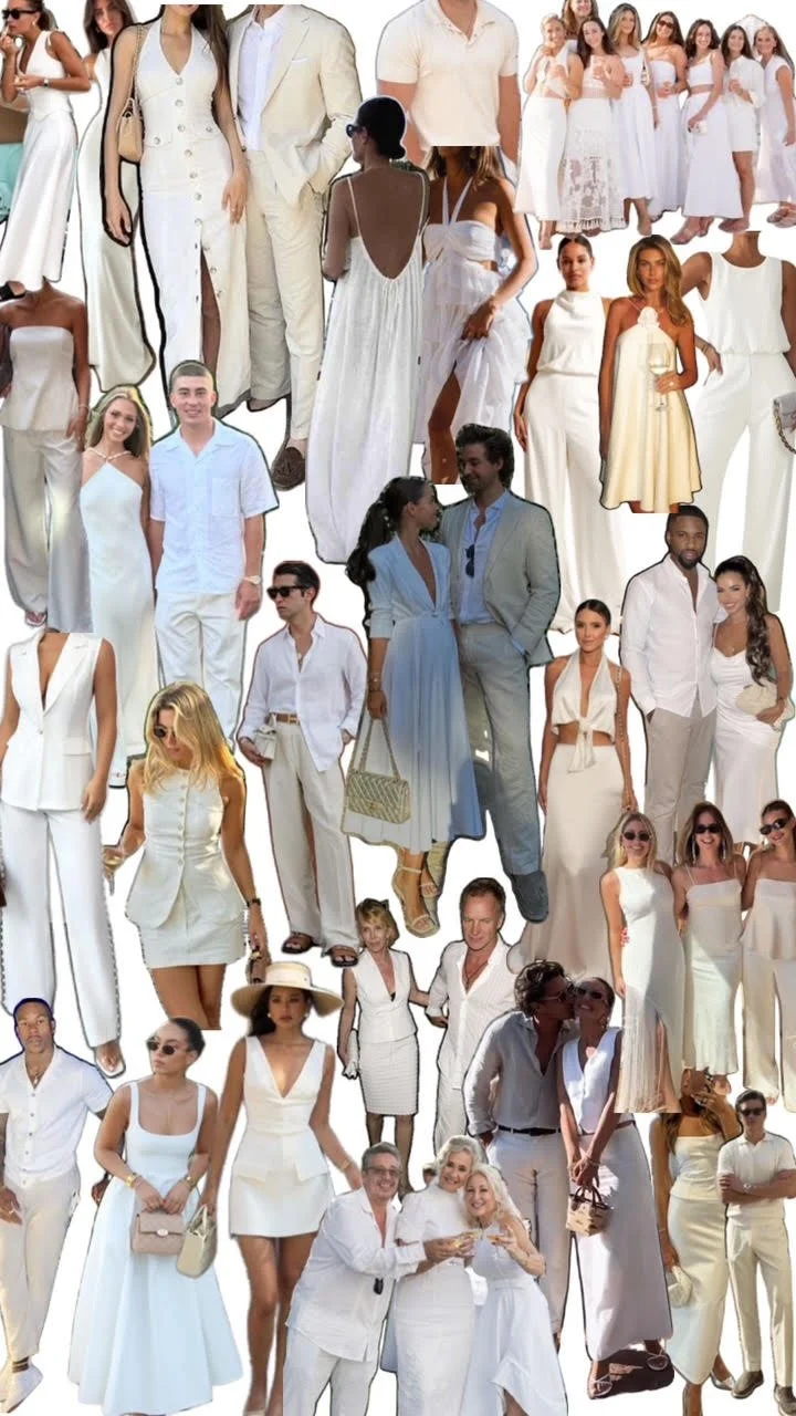 Lightweight fabrics such as linen, cotton, silk, and satin feel perfect for the setting. Flowing dresses, tailored white separates, breezy jumpsuits, or polished resort style pieces all work beautifully.